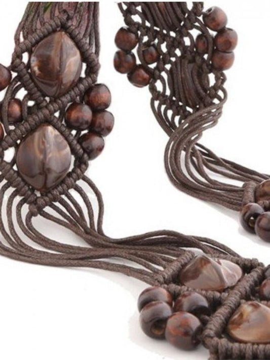 Boheme Macrame Beaded Braided Tassel Tie-up Belt