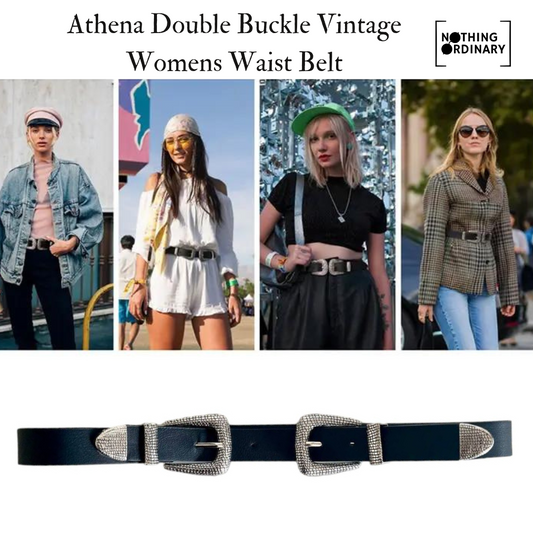 Athena Vintage Waist Belt For Women: Double-Buckle Waist Belt