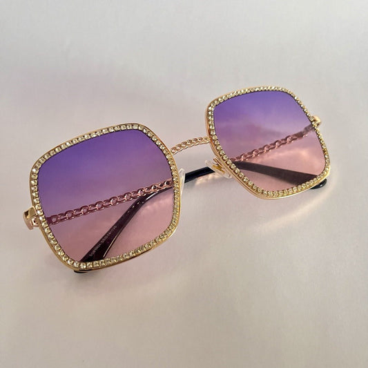 Love Notes UV400 Protected Square Rhinestone Sunglasses